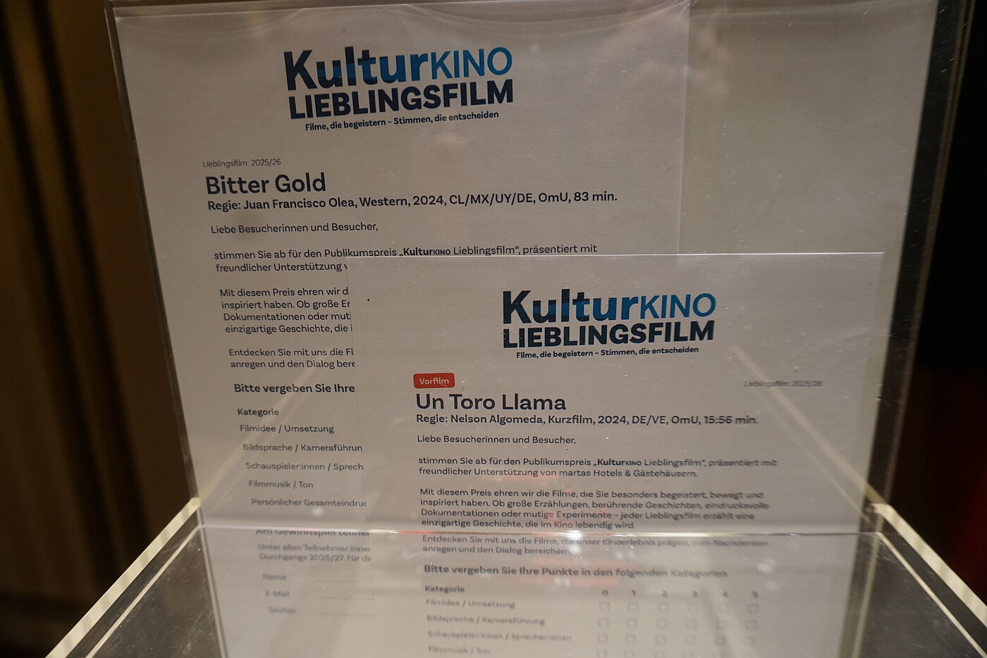 Das Publikum konnte dort auch ganz aktiv seine Meinung bei der Abstimmung zum KulturKINO Lieblingsfilmm des aktuellen Durchgangs kommunizieren.