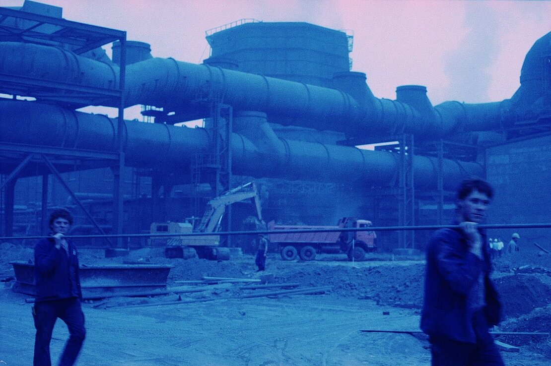 Im Sommer 1988 kommt Tina Bara mit einer Gruppe von internationalen Künstler:innen in die Buna-Werke in Schkopau. »Plaste und Elaste« lautet der Slogan für die Kunststoffprodukte, die dort entstehen. Eigentlich soll Bara die Künstler:innen porträtieren. Doch sie ist mehr an der Begegnung mit den Arbeiter:innen interessiert. Die Fotoserie, die hier entsteht, zeugt auch von gravierender Umweltverschmutzung und den Umständen, unter denen die Menschen dort arbeiten.