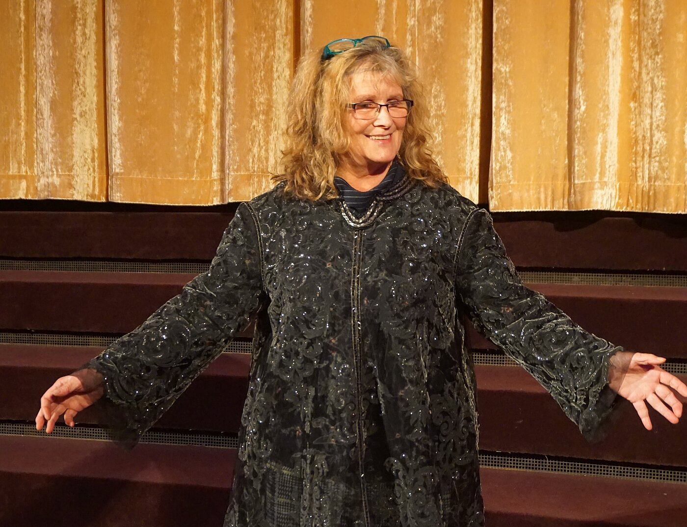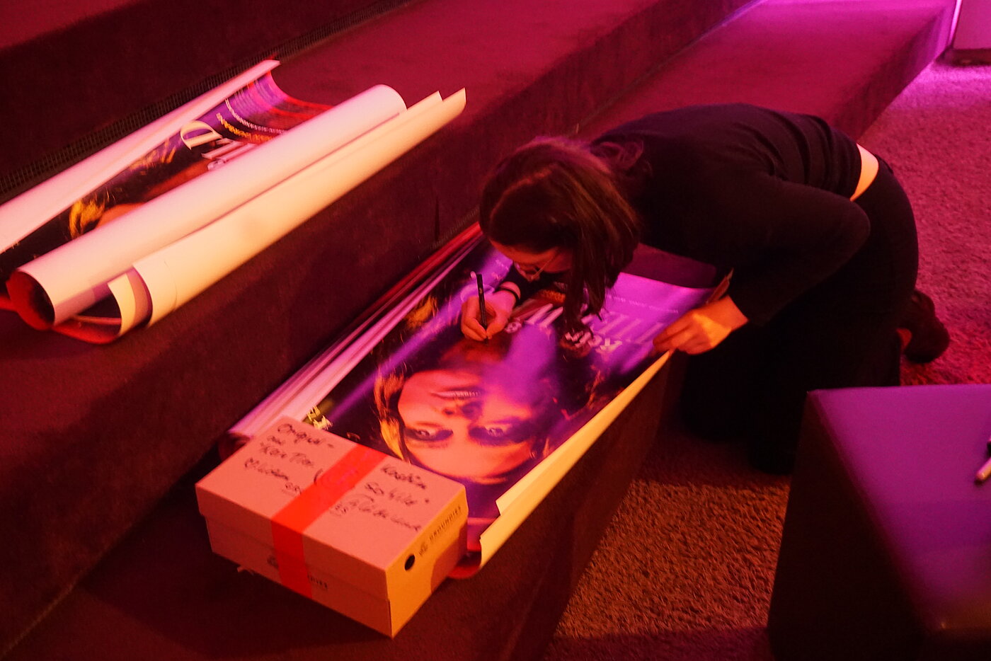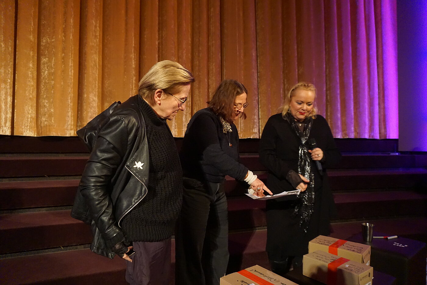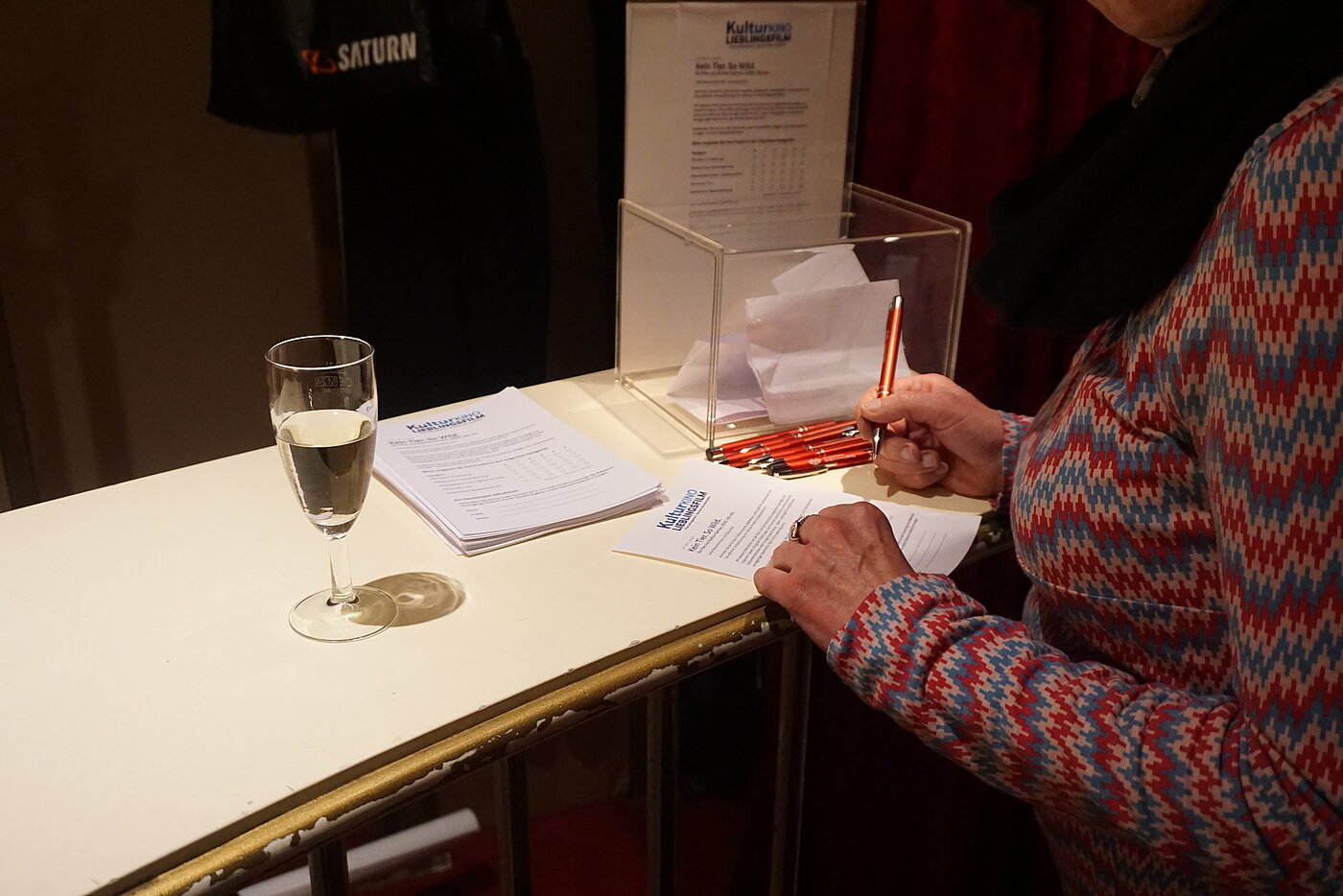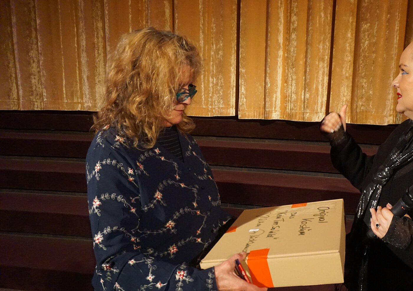 Ein besonderes Highlight des Saalverlosung waren diesmal verschiedene Originalkostüme aus dem Film, die von den Gewinner:innen teilweise gleich vor Ort anprobiert und präsentiert wurden.