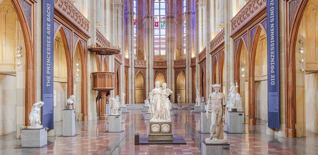 Die Friedrichswerdersche Kirche dient seit 1987 als Dependance der Alten Nationalgalerie, die eine der umfassendsten Sammlungen skulpturaler Kunst des 19. Jahrhunderts in Deutschland besitzt. Die Daueraustellung "Ideal und Form" zeigt Sammlungsstücke von der Schinkelzeit bis zum Kaiserreich. Sie zeichnet die Entwicklungslinien des langen 19. Jahrhunderts bis in die Moderne nach und lädt ein, die international ausgerichtete Berliner Bildhauerschule neu zu entdecken. Zu sehen sind bedeutende Werke von Christian Daniel Rauch, Johann Gottfried Schadow - darunter das Originalgipsmodell der Prinzessinnengruppe - Reinhold Begas, Elisabeth Ney oder Adolf von Hildebrand.